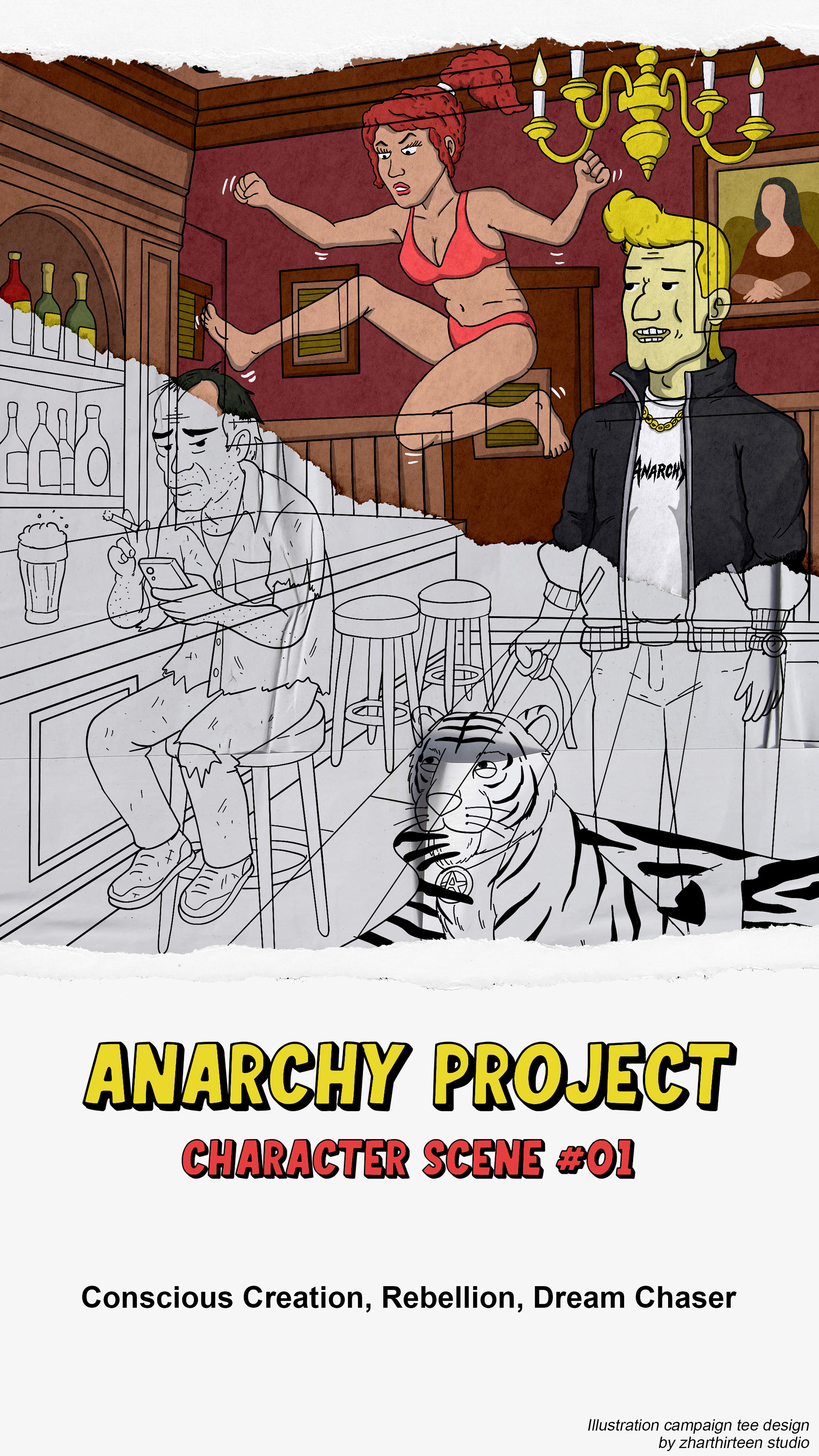 Anarchy Project x Zharthirteen Studio — a visual storytelling collaboration blending illustration, fashion, and rebellion.