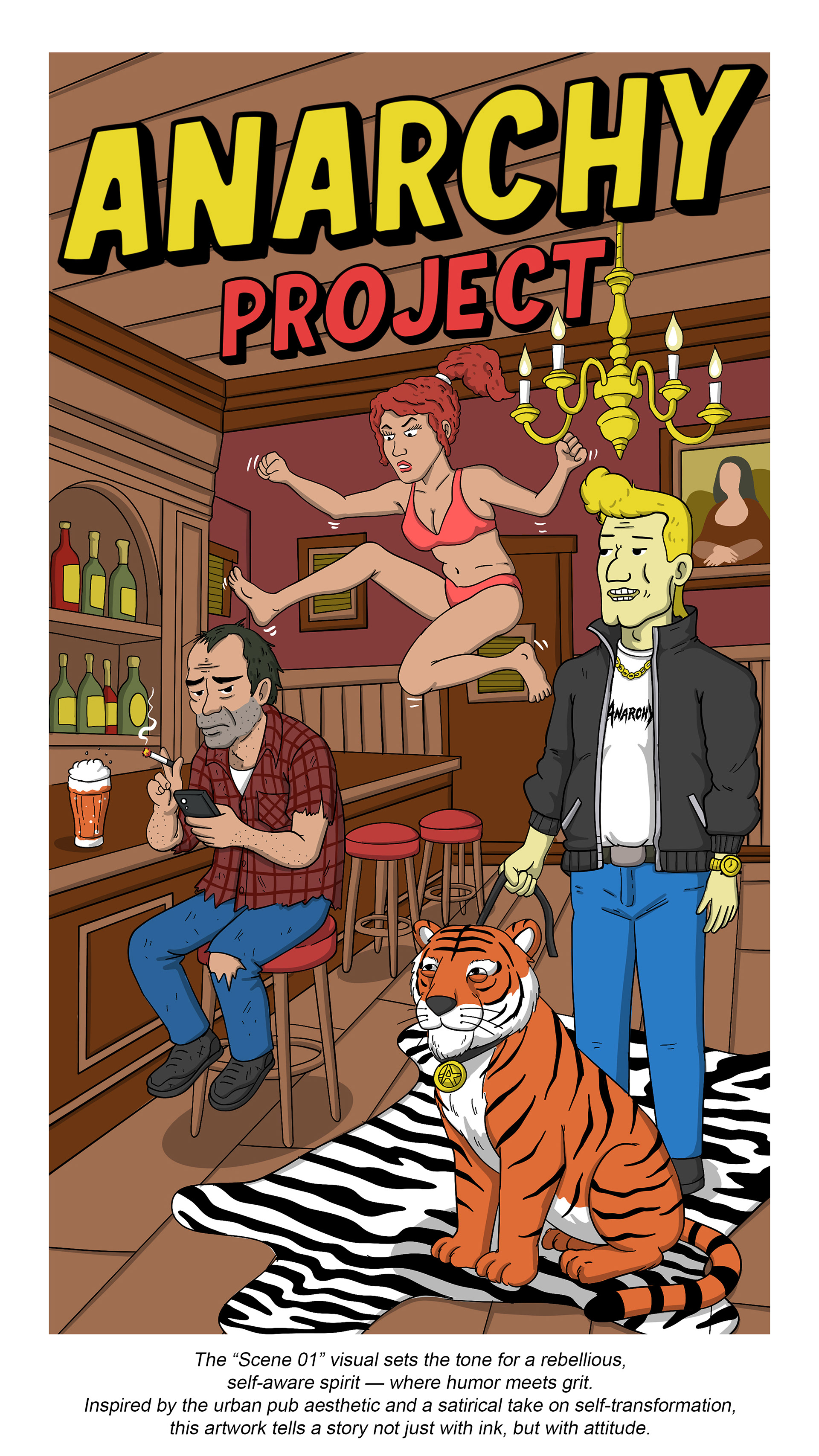 This project showcases two narrative artworks — Chaos at the Bar and Balkan Group Illustration — that capture the emotional depth and cinematic tone of the Anarchy Project universe.