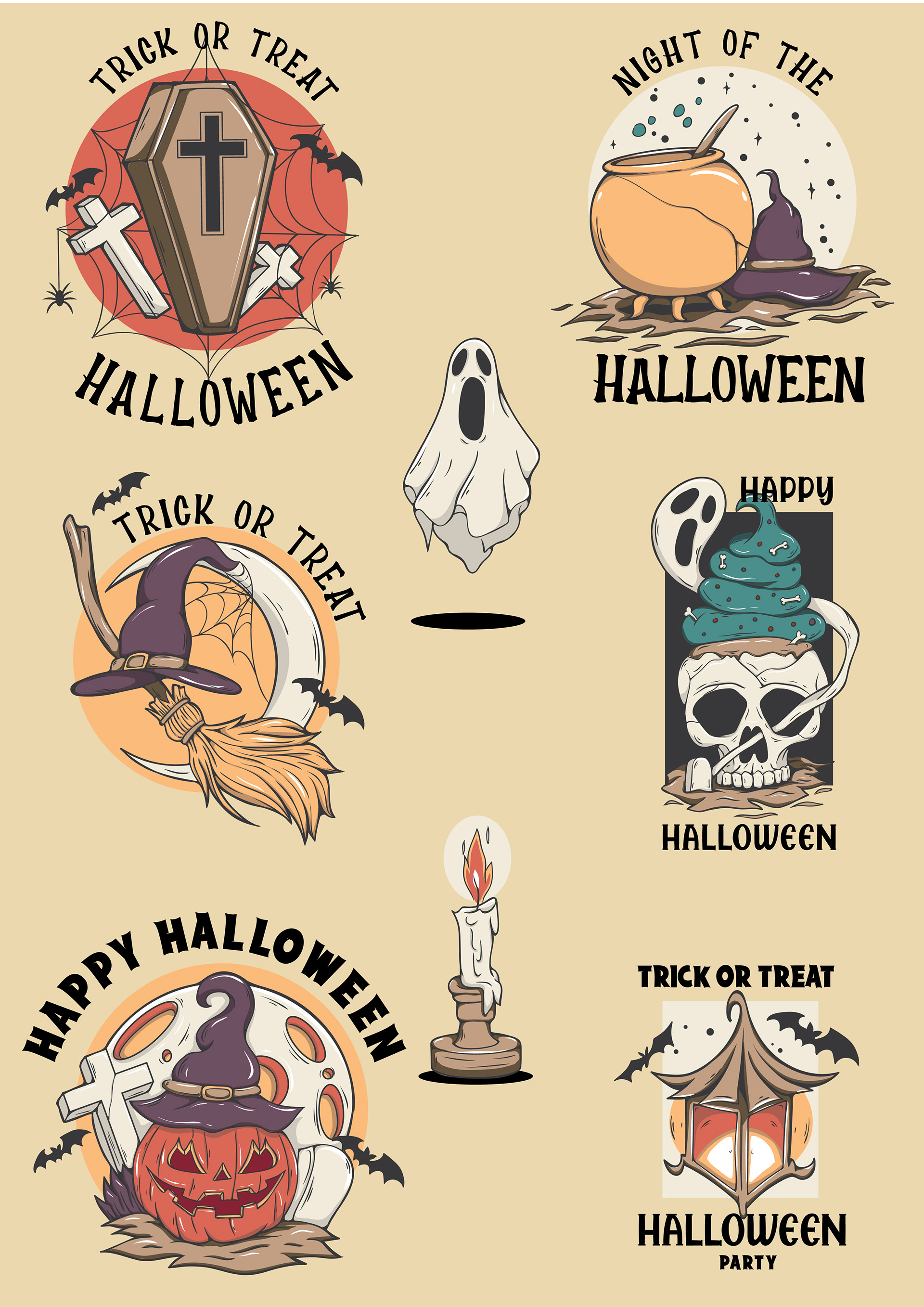 Halloween vintage bundle, perfect for vintage posters or logo designs, t-shirts, merchandise, to create greeting cards and so much more.