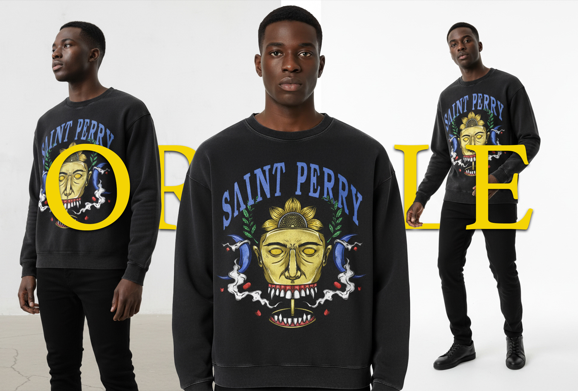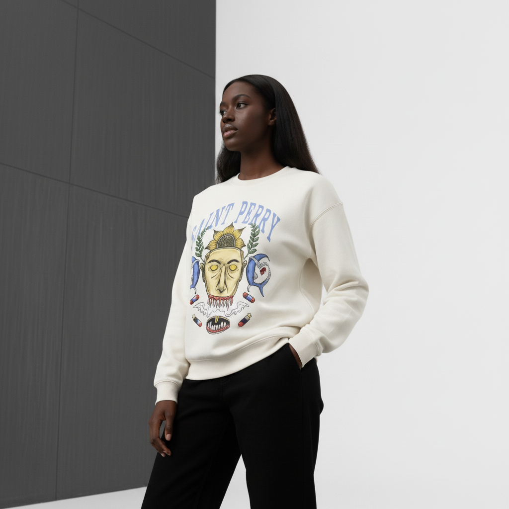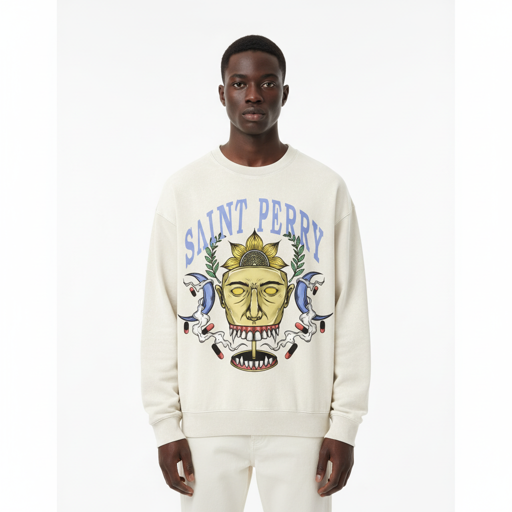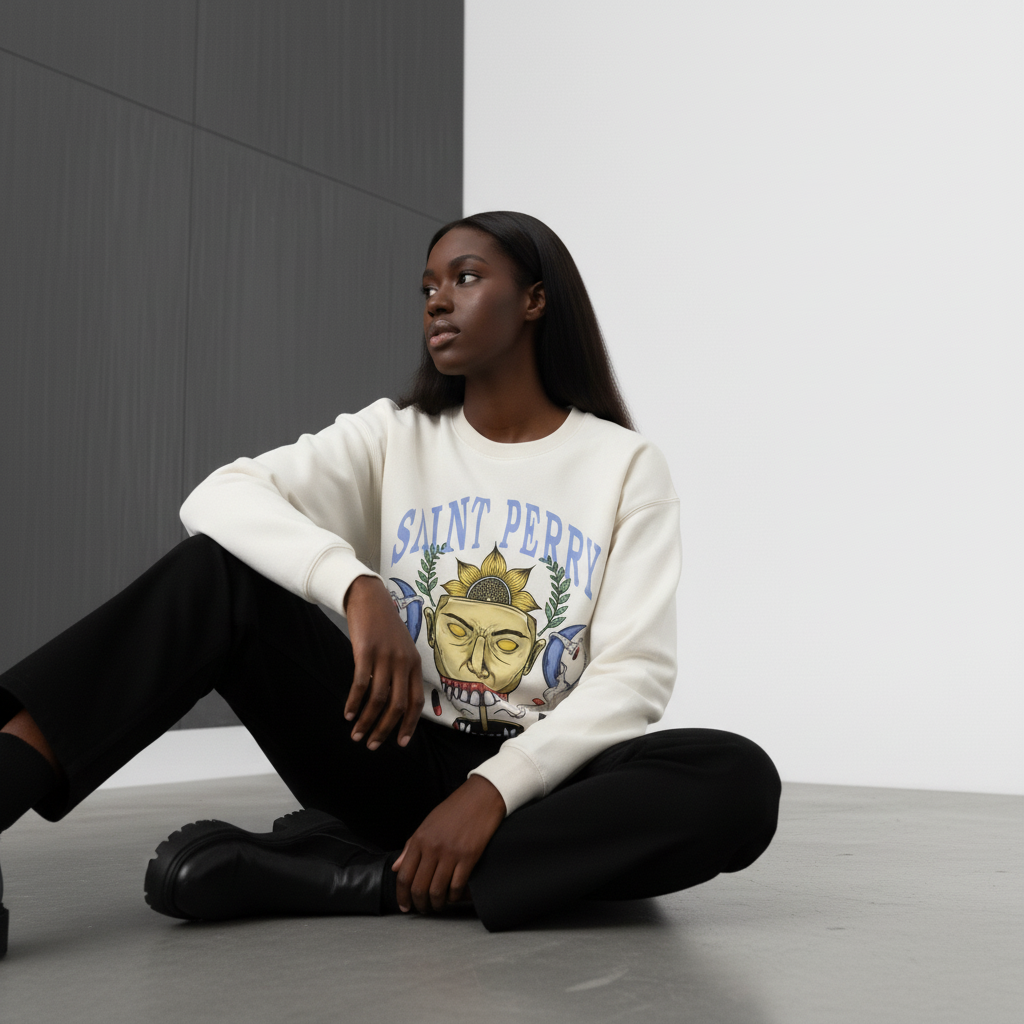 - Brand Identity: The iconic arched "SAINT PERRY" logo serves as the crown of the design, balancing street influence with refined luxury branding.