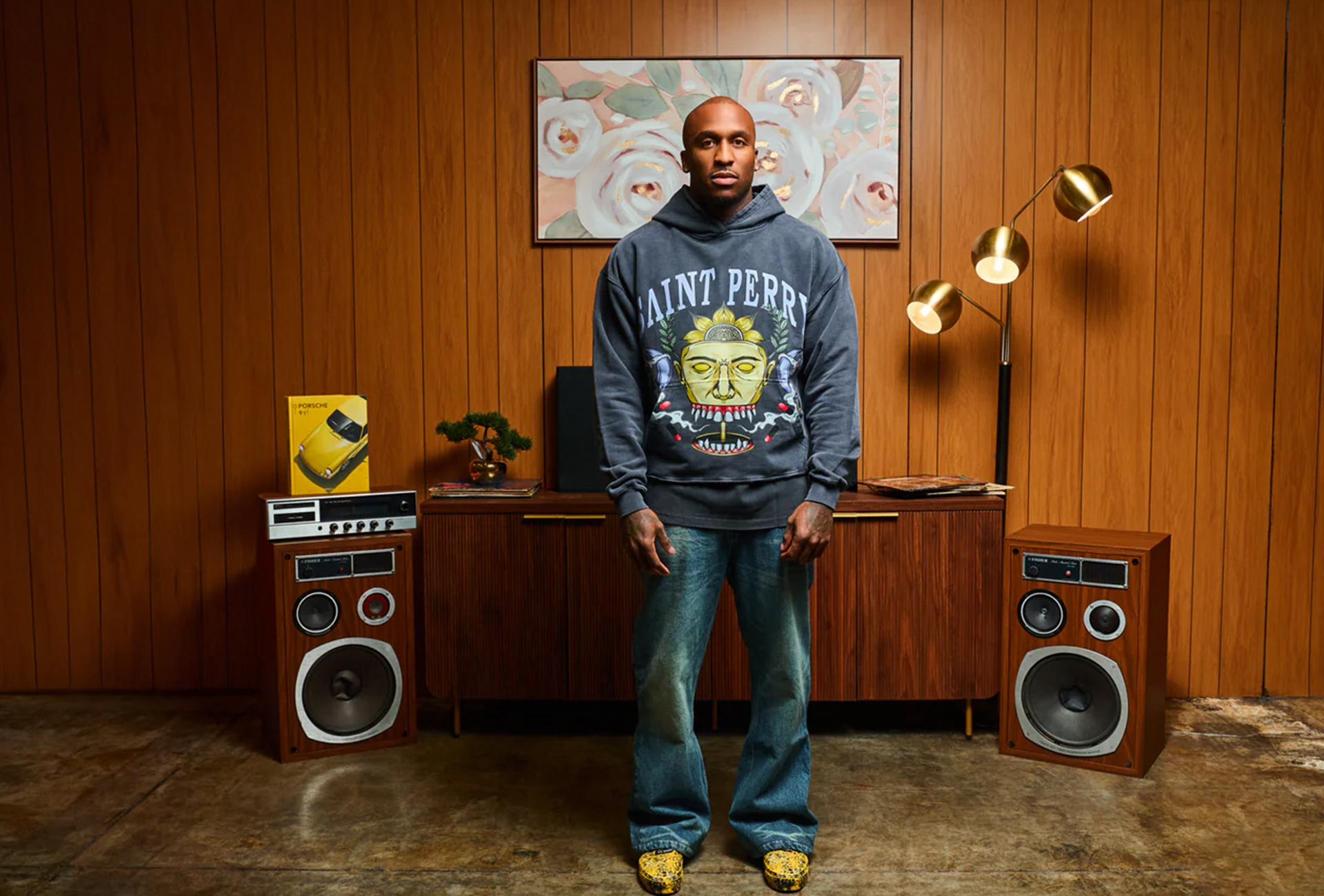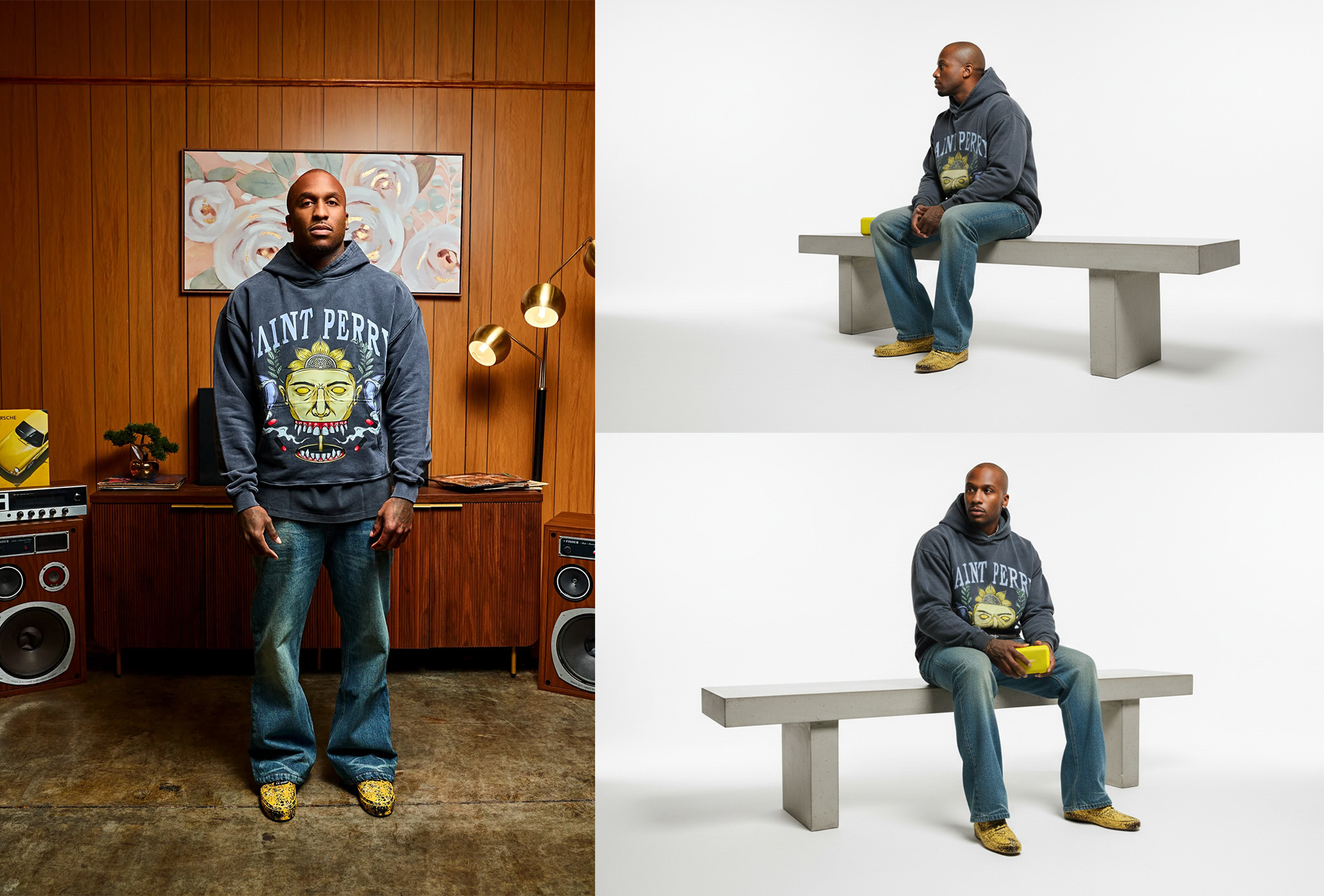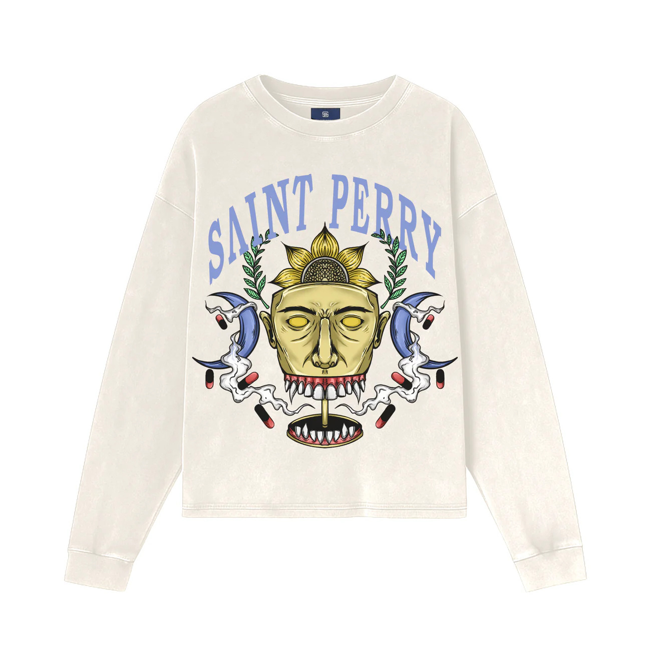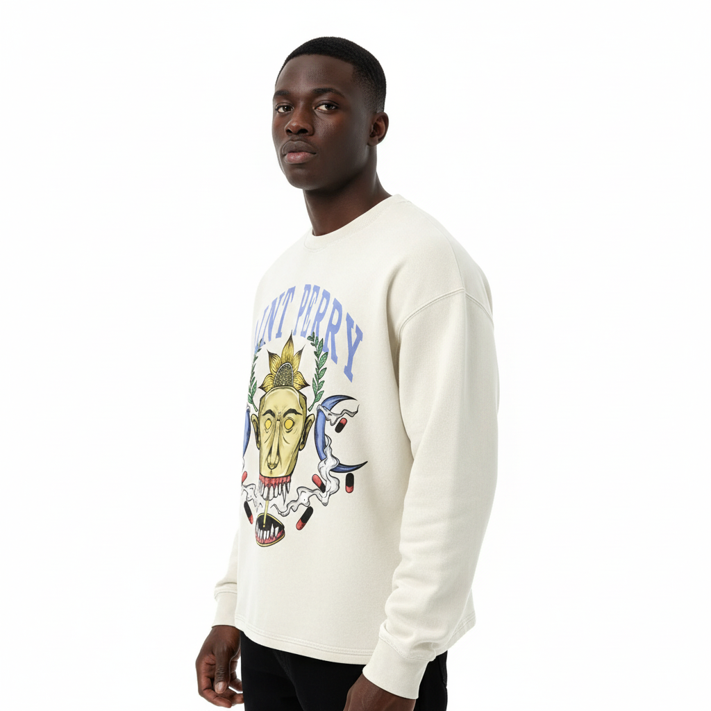- Brand Identity: The iconic arched "SAINT PERRY" logo serves as the crown of the design, balancing street influence with refined luxury branding.