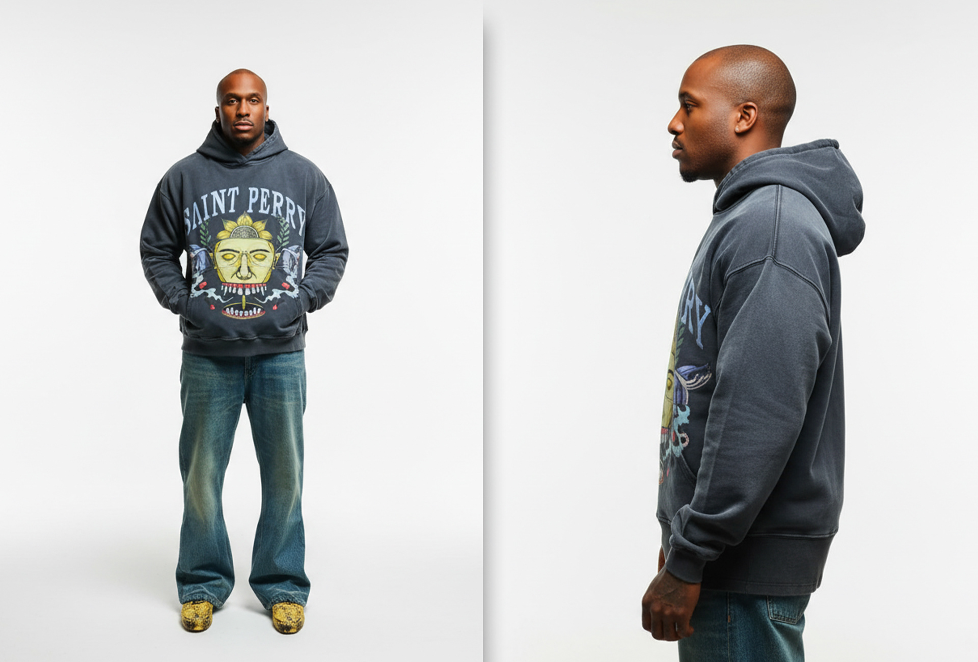 (Keywords: Streetwear Design, Apparel Graphics, Illustration, Saint Perry, Tech Pack, Fashion Illustration, Luxury Hoodie)