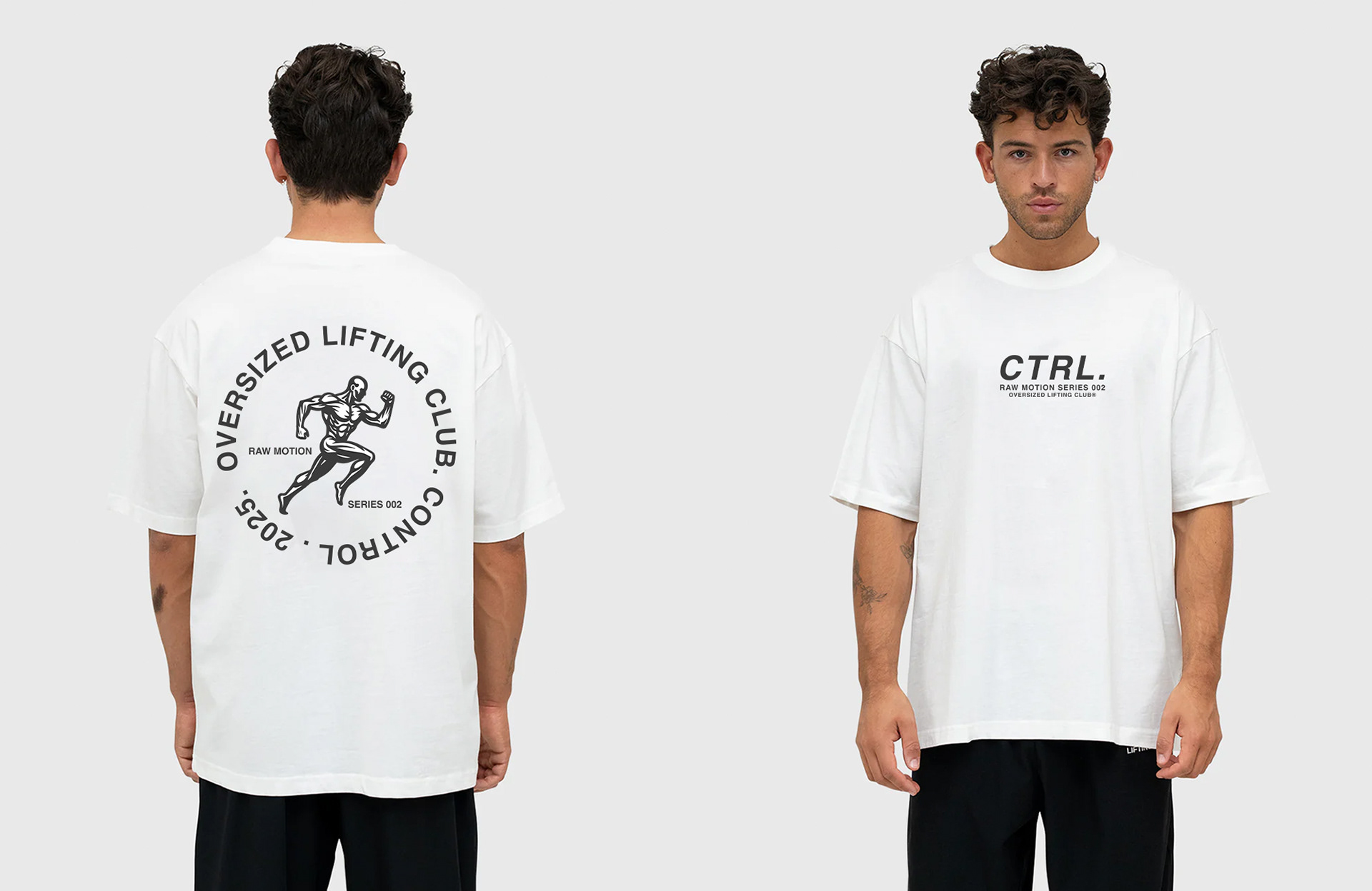 The minimal front type CONTROL contrasts the expressive back print representing CHAOS, the duality every athlete and creator faces.