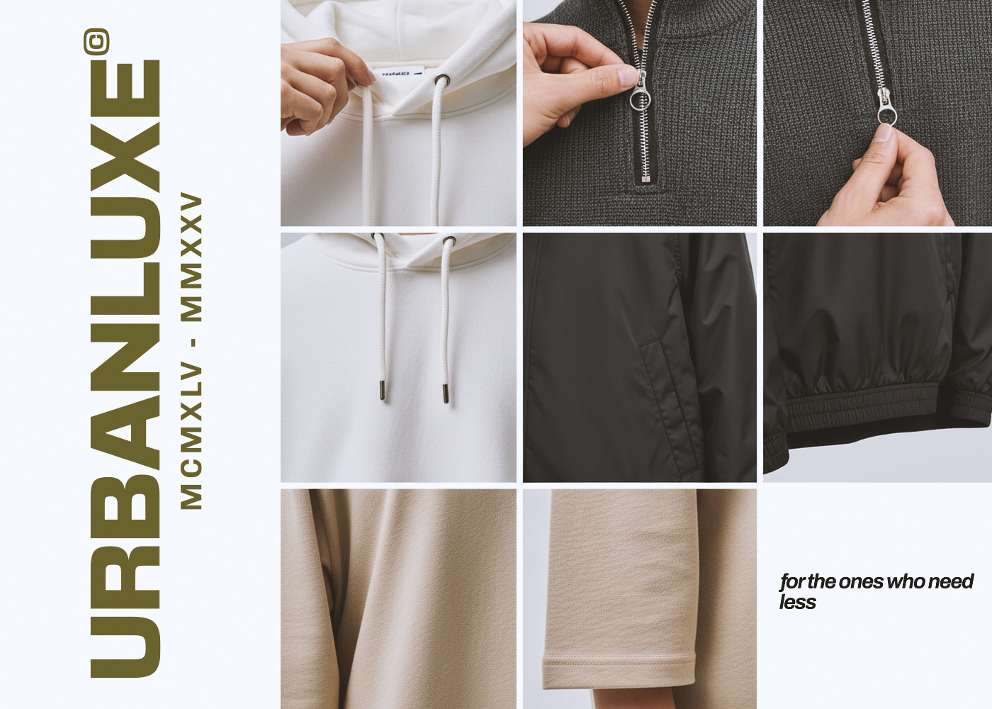 A contemporary fashion collection that merges streetwear attitude with luxury refinement. Developed through a cohesive visual system, minimal typography, and editorial presentation, Urbanluxe reflects a clean-luxury direction for modern streetwear culture.