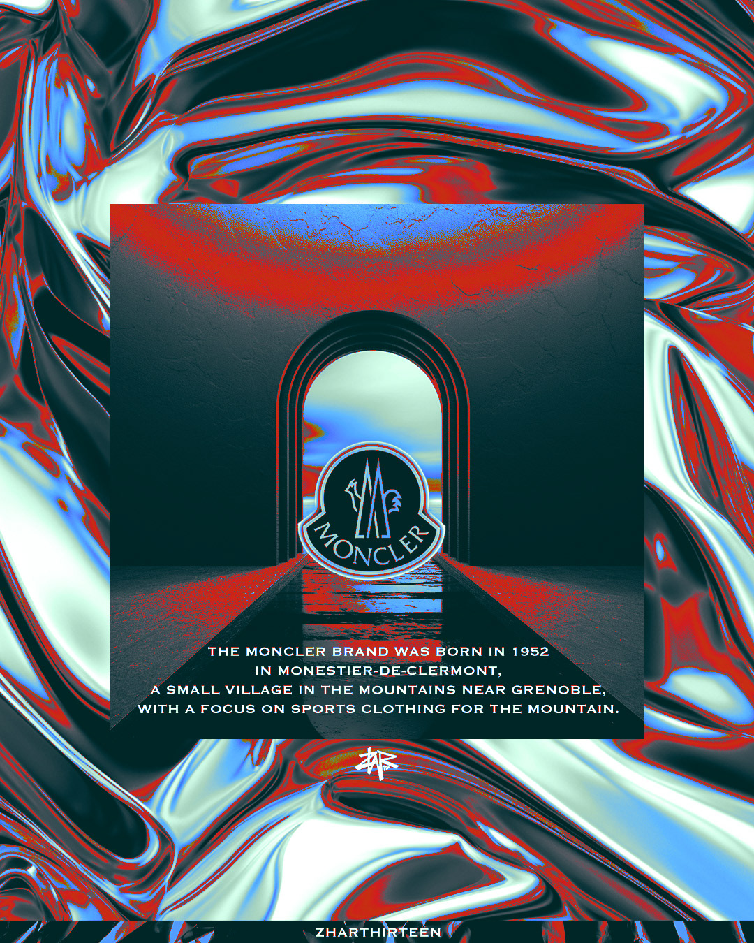“Luxury alpine wear meets post-industrial grit. The Moncler crest is stripped down and armored with brutalist geometry — blurring lines between technical fashion and street survival.”