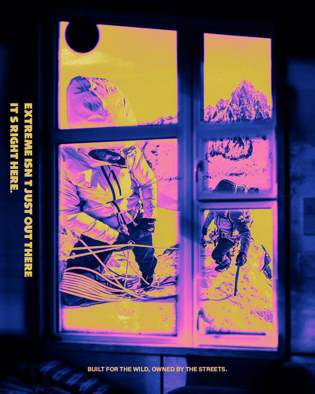 “Mountainwear through a cyberpunk lens. K2’s legacy is transformed into a graphic language of survival — cold, sharp, and graphically aggressive.”